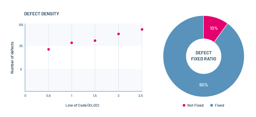 • Defect Density는 특정 운영 또는 개발 기간 동안 소프트웨어/모듈에서 확인 된 결함 수를 소프트웨어/모듈의 크기로 나눈 값을 의미합니다.