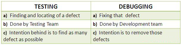 Difference between Testing and Debugging