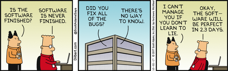 프로그래머 : 앞으로 버그가 안 나올지에 대해 제가 알 방법은 없어요.